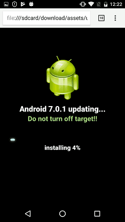 - Зловред показывает поддельную HTML-страницу обновления (update.html), блокирующую экран устройства на длительное время.