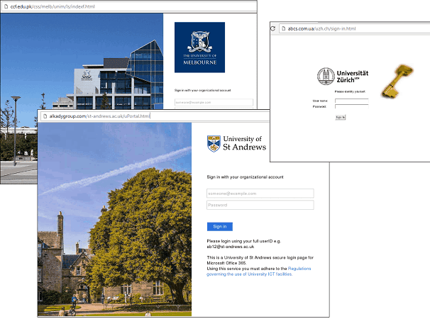 Фишеры охотятся не только за деньгами, но и за знаниями: за последний год мы зафиксировали фишинговые атаки на 131 университет в 16 странах мира. Больше половины из них — 83 высших учебных заведения — находятся в США, 21 — в Великобритании, по 7 в Австралии и Канаде. Одним из результатов деятельности мошенников стало громкое похищение большого количества документов (в том числе исследований в области атомной энергетики) из нескольких университетов Великобритании.