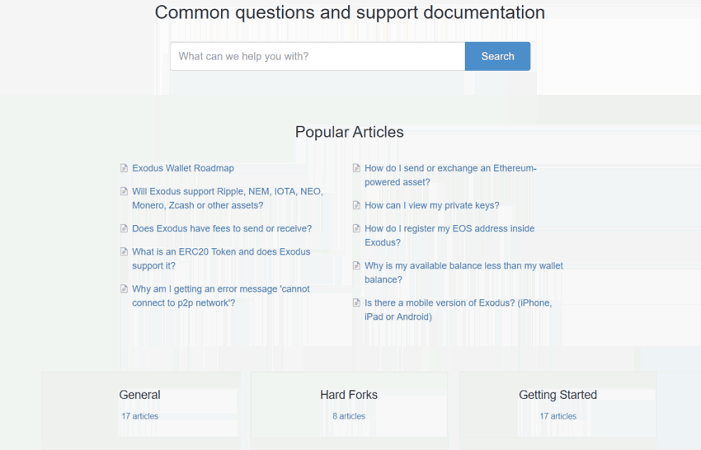Чтобы пользователи могли найти ответ на вопросы, связанные с работой программы, у Exodus есть раздел поддержки.