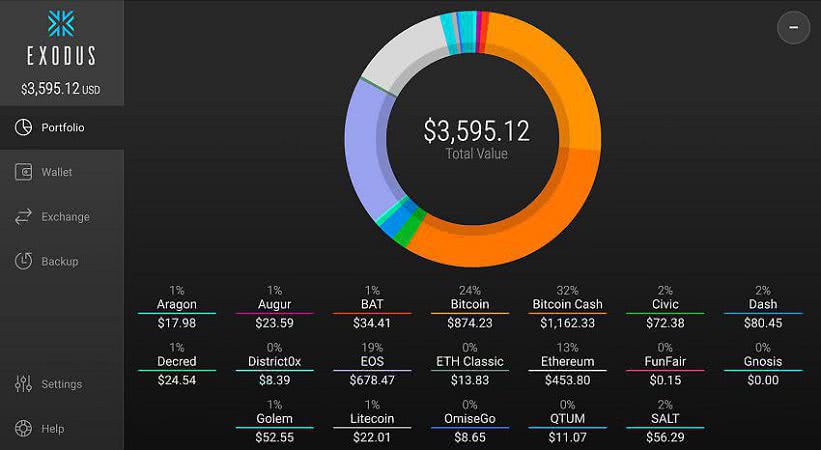 Exodus появился в 2015 году и предложил пользователям концепцию единой программы, где можно надёжно хранить и быстро обменивать наиболее популярные криптовалюты. Также создатели уделили особое внимание интерфейсу и удобству пользования. В результате получился добротный кошелёк для систем Windows, macOS и Linux, который с каждым годом становится только лучше.