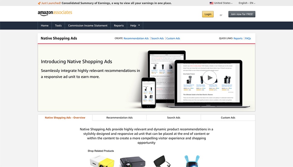 Amazon Native Shopping Ads предлагает, чтобы они «легко интегрировать высокорелевантные рекомендации в адаптивный рекламный блок, чтобы зарабатывать больше». Звучит отлично? По правде говоря, это не единственный способ монетизировать веб-сайт с помощью Amazon, поскольку его партнерская программа также предлагает надежные варианты, и вы всегда можете создать партнерский магазин Amazon.