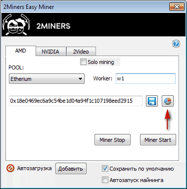 Справа от кнопки сохранения есть кнопка статистики. Она открывает статистику кошелька в зависимости от выбранного пула в браузере, который установлен по умолчанию. Очень удобно.