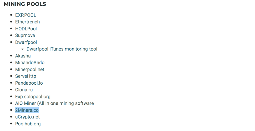 Добывать EXP советуем вместе с нами — на пуле2Miners. Он есть на официальном сайте проекта.