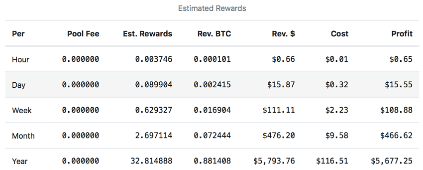 При сегодняшних стоимости монеты и сложности сети Equihash-майнер от Bitmain приносит чуть больше 15 долларов в сутки и 466 в течение месяца. Годовой результат — 5677 долларов, хотя за это время показатели точно изменятся.