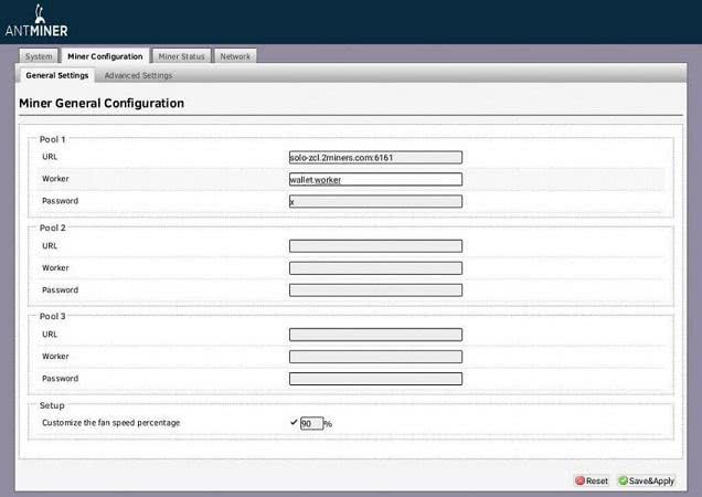 Запускаем настройки ASIC-майнера. В отличие от Innosilicon A9 ZMaster, элементы управления здесь находятся вверху.