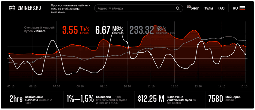 Рабочий вариант для ASIC-майнера от Bitmain — пул 2Miners. Здесь стабильные выплаты, два режима добычи, понятный интерфейс и надёжные серверы. Последние есть в разных регионах мира, поэтому проблем с пингом нет. Подробнее о проделанной работе на пуле за последний месяц читайте в этой статье.