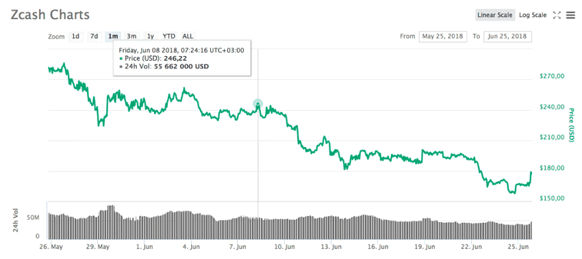 Для сравнения вспоминаем расчёты в первой половине июня. Тогда цифры составляли 142 и 4278 доллара соответственно. Сказалось снижение курса: восьмого июня за монетку ZEC давали 246 долларов. Сегодня — 173 доллара.