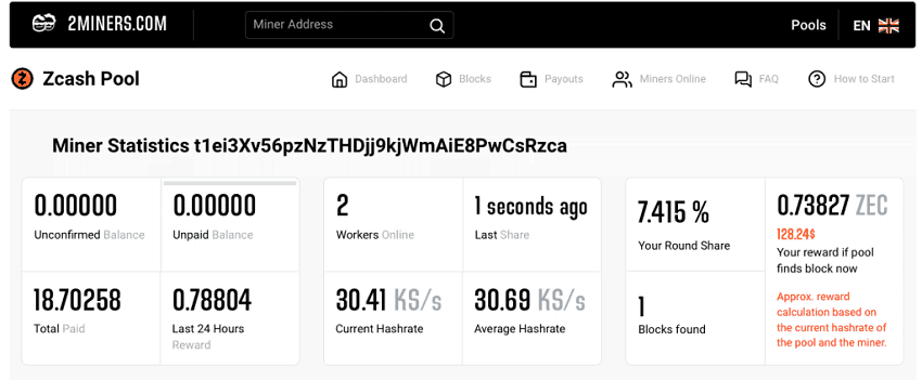 Если всё хорошо, сайт покажет статистику майнера.