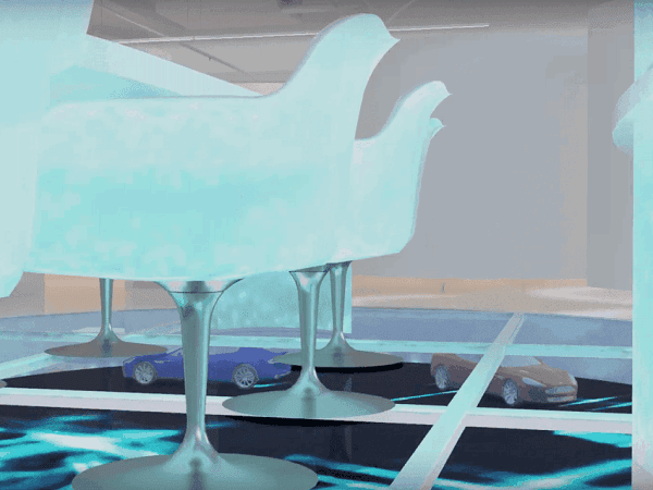 Конференц-зал оснастят стеклянным полом, под которым разместится площадка для миниатюрных автомобилей с дистанционным управлением. Это будет частью игры, в которой можно выиграть криптовалюту. Владелец офиса хочет, чтобы всё в помещении создавало ощущение нахождения внутри компьютерной игры.