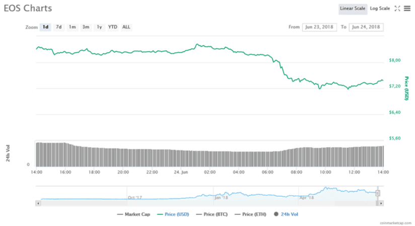 Такое изменение стоимости криптовалюты EOS связывают с разногласиями, возникшими после запуска основной сети монеты. Эмитенты блоков недавно взяли на себя ответственность за блокировку 7 аккаунтов, которые были тем или иным образом связаны с мошенничеством. В сообществе это вызвало серьезные вопросы о децентрализации токена.