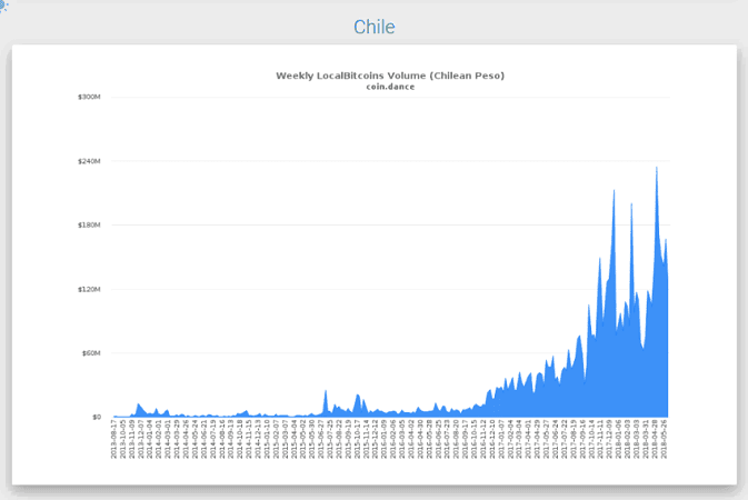 Чилийский рынок Localbitcoins также поставил новый рекорд объема торгов в паре BTC к местной валюте. Еще в первую неделю мая объем торгов достиг 234,4 млн чилийских песо, что приблизительно равно $370 000.