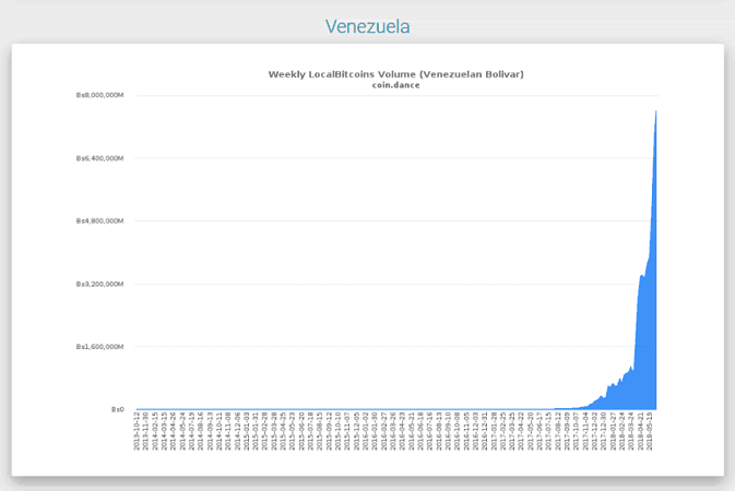 С Венесуэлой все не так однозначно, так как эта страна ставит 13 еженедельный рекорд роста объема продаж за последние 14 недель. Подобное вызвано скорее интенсивностью гиперинфляции внутри страны, нежели ростом интереса к биткоину у местных жителей.