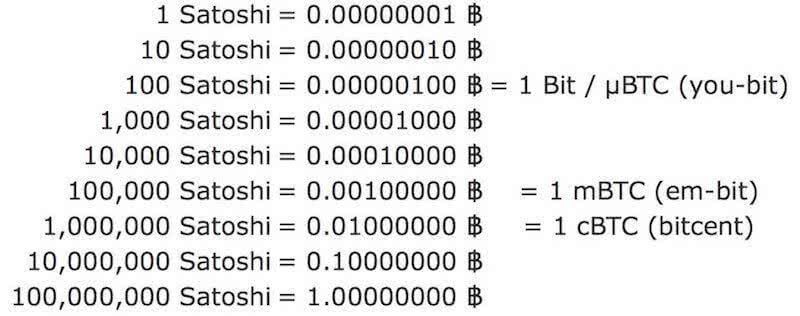 Сатоши и другие разменные части биткоина: юбит, эмбит и битцент