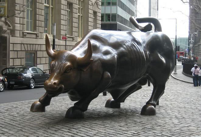 Статуя “Атакующий бык” в Финансовом квартале Нью-Йорка символизирует финансовый оптимизм и процветание