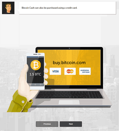 Обучающий сервис предлагает купить Bitcoin Cash. При этом на экране смартфона значок и тикер BTC, которыми обозначается биткоин