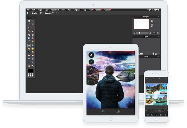 Pixlr Pro — в котором есть возможность редактирования фотографий, векторов и текста. Вы можете редактировать, как профессионал, с помощью инструментов, которые включают маски слоев, несколько параметров кисти, корректировку кривых и уровней, режимы цвета и наложения, эффекты и фильтры, а также инструменты преобразования и обертывания.