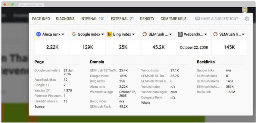 SEOquake позволяет быстро проверить поисковую оптимизацию с помощью этого расширения.