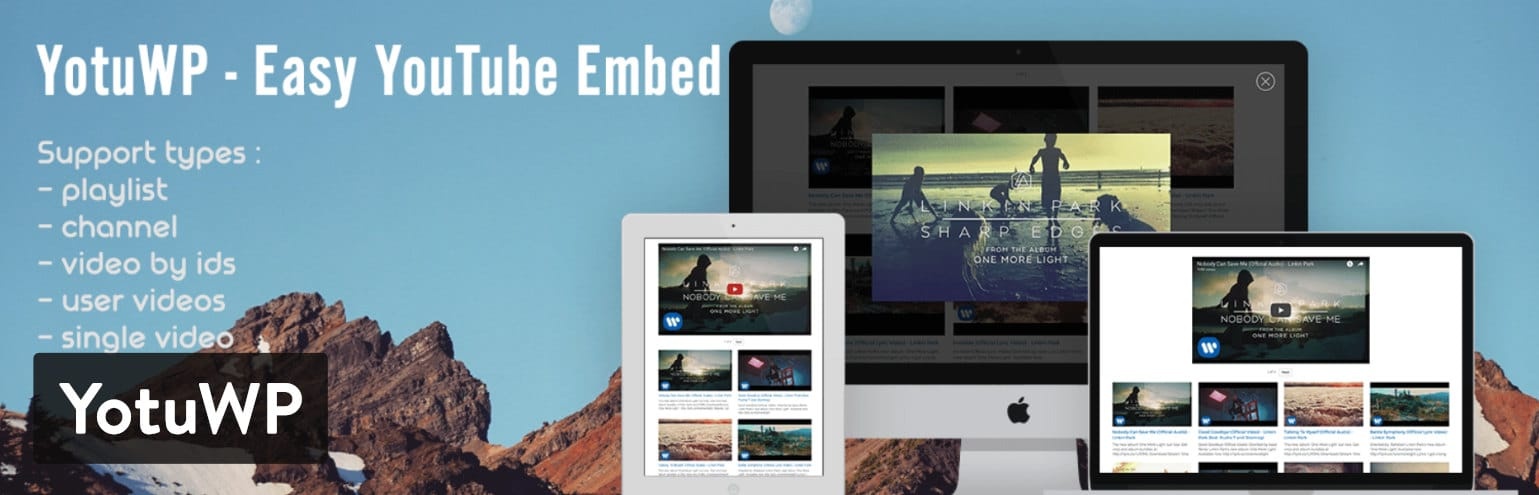 Если вы ищете простой и в то же время изящный способ размещения своих видео с YouTube на сайте WordPress, плагин YotuWP поможет вам в этом. Он легкий, простой в использовании и достаточно мощный, чтобы поддерживать галереи, плейлисты, каналы и видео от определенных пользователей. У вас даже есть возможность добавить единственное видео из одного источника. В виде интеграций доступны YouTube, Vimeo и Wistia, а макеты включают сетку, список и смешанные галереи.