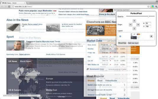 Это довольно неприятно, когда окончательный результат вашего сайта просто немного отходит от макета. PerfectPixel позволяет наложить изображение на экран во время редактирования, так что вы можете убедиться, что все в порядке.