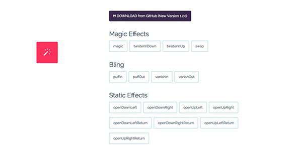 Хорошая библиотека анимации CSS3 со спецэффектами. Используйте ее, чтобы оживить ваши проекты! Выбирайте, что вам необходимо из магических эффектов, блеска, статических эффектов, перспективы, поворотов, скольжения, взрывов и пространственных эффектов.
