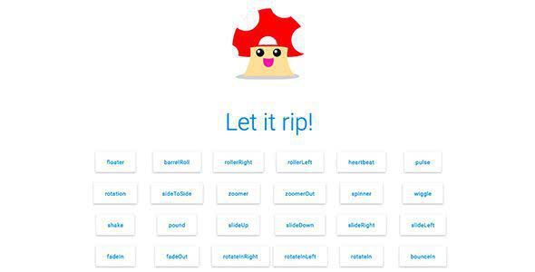Эти анимации забавны и причудливы! Они могут быть не совсем подходящими для любого веб-сайта, но они, несомненно, заставят ваш проект выделяться. Трясите, усиливайте, стробируйте или крутите элементы на своем сайте.