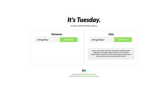 Эта библиотека анимации CSS является автономной библиотекой для добавления необычных входных и выходных эффектов, таких как расширение, сжатие, падение, хлопок и петля.