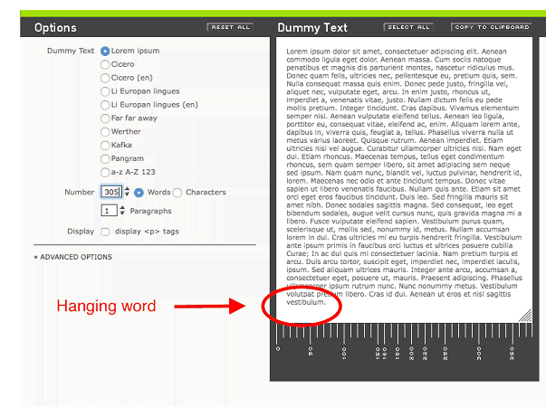 - Следите за любыми висящими словами (где ваше предложение достигает определенной длины, а затем отправляет одиночное слово на следующую строку). Мало того, что это выглядит плохо, но это также сильно нарушает скорость чтения для вашего пользователя.