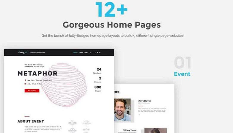 Для примера мы выбрали многофункциональную WordPress тему под названием . В ее наборе можно встретить целых 12 профессионально созданных главных страниц. Таким образом, вы незамедлительно создадите онлайн проекты, посвященные предстоящим событиям, салону красоты, спортивной студии, архитектуре, конструкции, ресторану, салону автомобилей и запчастей. Также в комплекте идут отдельные темы для студии фотографии и очаровательная онлайн галерея. Плюс, ознакомившись с EasyJet, вы получите отдельную тему для бизнеса.