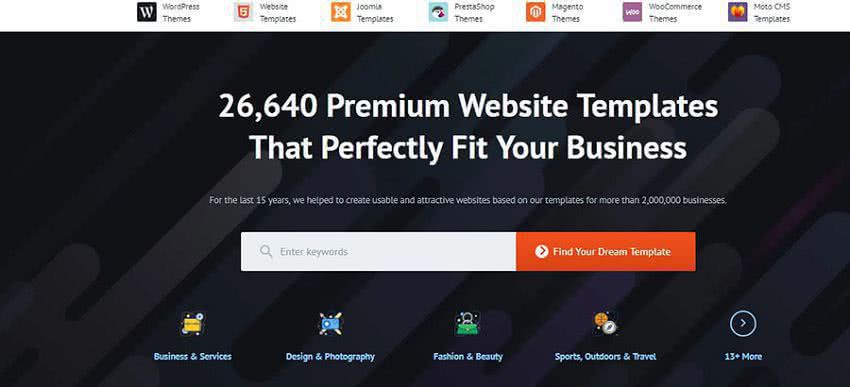 Само название этой компании известно каждому владельцу сайта. На протяжении практически пятнадцати лет занимается изготовлением полностью укомплектованных шаблонов. Безусловно, продаваемая ими продукция призвана помочь каждому желающему. С ней могут без труда работать юзеры всех уровней знаний. Таким образом, работая с темами от ТМ, пользователь получает свой сайт прямо-таки из коробки. С какими платформами сотрудничает TemplateMonster и сайты каких типов вы можете построить?