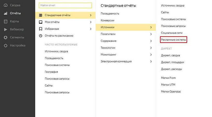 Проверяем через Яндекс.Метрику: отчет по рекламным системам
