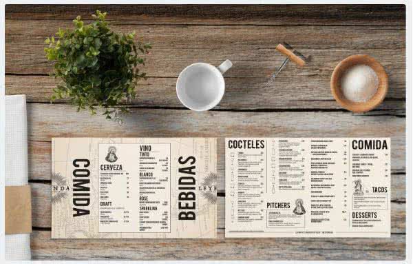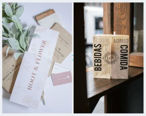“Огромное меню на маленьких столах — это провал”, — объясняет Фэлтон. “Также важно включать бренд в меню. Для Root & Flower важной составляющей их бренда было информирование о винах и других спиртных напитках. Для коктейль-бара в Бруклине, подающего латиноамериканские алкогольные напитки, Leyenda, бренд должен был отражать нахальство и дерзость, но они хотели, чтобы это оставалось тонким. Поэтому мы создали небольшие иллюстрации, похожие на религиозные брошюры, но только с тако и вином”.