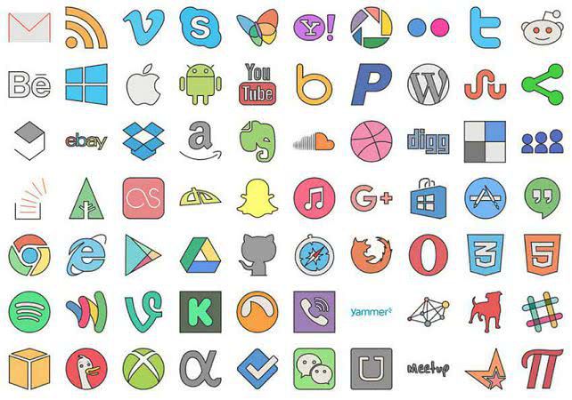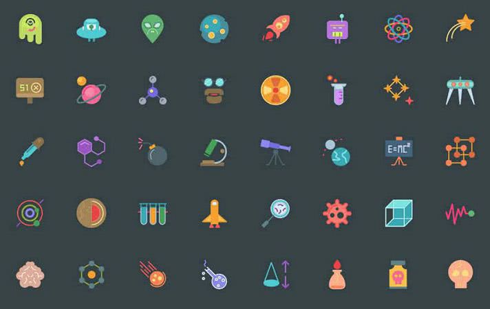 Social Media Icons и Radical Science Icons используют традиционную яркую окраску, но с некоторой изюминкой.