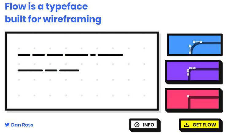 Бесплатные wireframe шрифты – это нейтральные шрифты, которые напоминают Lipsum. Они используются для завершения прототипа, разграничения текстовых областей и заголовков. Рассмотрим Flow от Дэна Росса. Он позволяет создавать абстрактные заполнители, оставляя все остальное воображению.