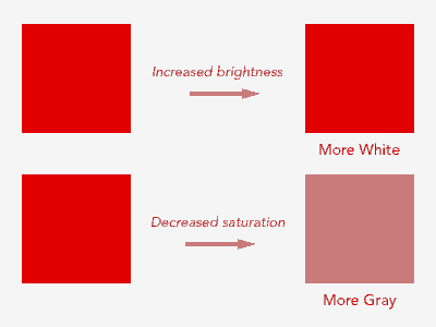 Яркость и насыщенность — это разные свойства цвета. Первое — это сколько белого или черного цвета смешивается в данном цвете, в то время как второе относится к количеству серого цвета.