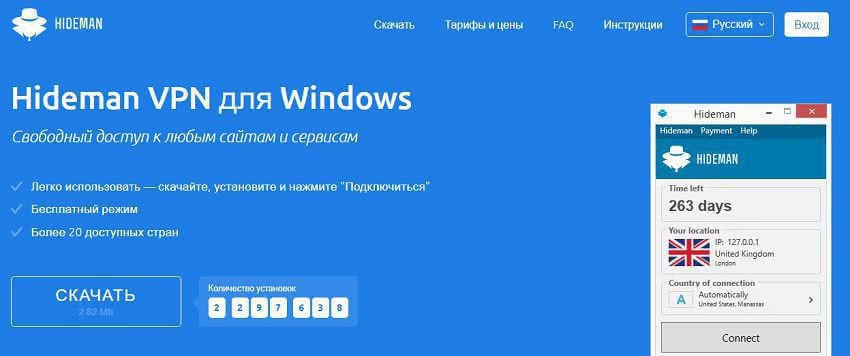Hideman VPN | 7 часов | 9 у.е. в месяц | автоматический | + | + |