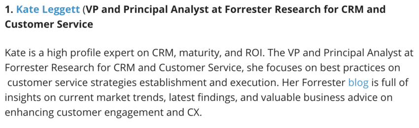 Во-первых, имя — это якорный текст, указывающий читателю на ее Twitter. Во-вторых, есть анкор, отправляющий читателя в блог Кейт.