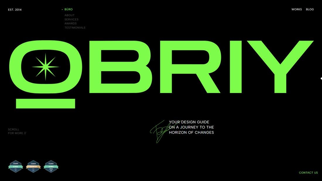 Веб-сайт Лу Дос Сантоса, представленный выше, использует взаимодействие при наведении курсора для создания интереса. От белого пузырька для отображения курсора до перемещения текста, черно-белый цвет здесь совсем не скучен.