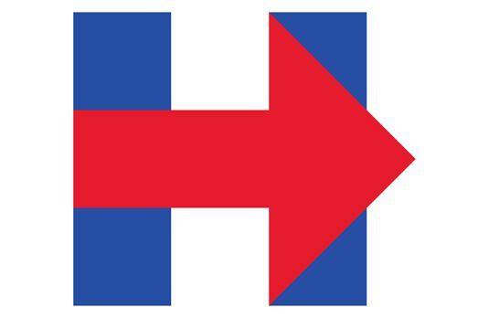Логотип Хиллари Клинтон — синий H с красной стрелкой, перекрывающей его центр.
