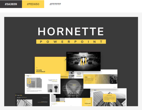 Хотя на первый взгляд черный и желтый могут показаться резкой цветовой комбинацией, она может задать тон для проекта, который должен излучать силу. Эта цветовая схема PowerPoint смягчает жесткость сочетания черноватым оттенком, который немного сероватый и выглядит более мягким.