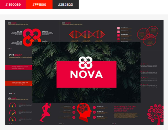 Хотя реверсивный текст и красный цвет не всегда рекомендуются, из шаблона Nova видно, что это может быть потрясающей комбинацией. Но стоит отметить, эта современная цветовая схема лучше всего подходит для конкретного контента и аудитории.