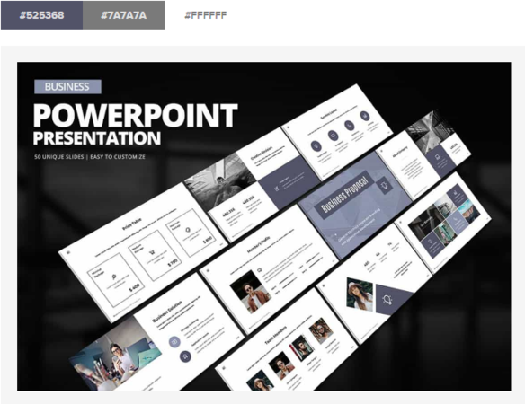 Хотя пурпурно-сине-серый шаблон презентации Business PowerPoint впечатляет, он представляет собой огромную тенденцию в дизайне презентаций. Выберите цвет — возможно, ваш доминирующий цвет бренда — и используйте оттенки и тона для цветовой схемы презентации.