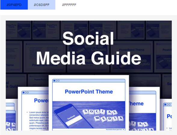 Благодаря современному тренду монотонной палитры вы можете получить массу удовольствия. Темный и светлый синий цвет в шаблоне Social Media Guide доказывает, что это очень удобная цветовая схема.