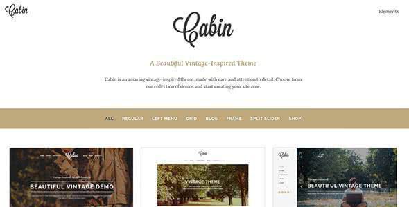 Cabin — еще одна тема WordPress с винтажным дизайном, которая может использоваться для различных типов веб-сайтов. Включает в себя слайдер с функциональностью параллакса, большие изображения и видеогалереи, полностью отзывчивый дизайн, настраиваемое меню, и другие гибкие инструменты настройки.