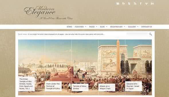Название говорит само за себя — у шаблона элегантный и стильный дизайн, и тема может использоваться для разных типов веб-сайтов. Она поставляется с отличными инструментами для настройки, изменения фона, многими вариантами цвета, отличной поддержкой, тремя различными слайдерами для главной страницы, великолепными галереями изображений.