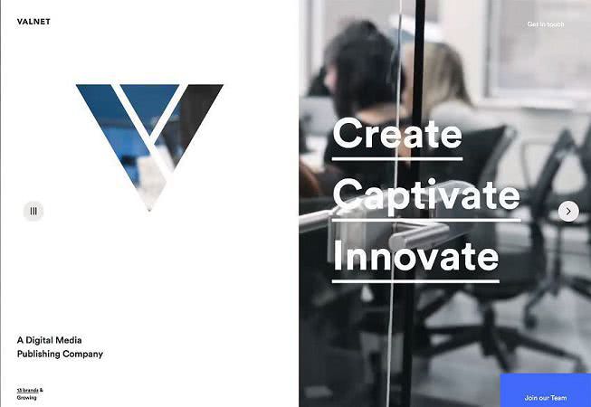 использует ту же концепцию, но оставляет намного больше для воображения пользователя. В фоновом режиме работает видеоролик В-roll, но он на самом деле только создает ощущение движения и цвета в звездном дизайне. То, что он делает, это побуждает пользователей кликнуть и действительно погрузиться в дизайн и контент веб-сайта.