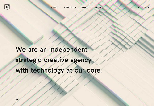 фокусируется на фигурах и анимации почти без цвета, чтобы привлечь пользователей. Движущийся куб интригует и его достаточно, чтобы вызвать интерес.