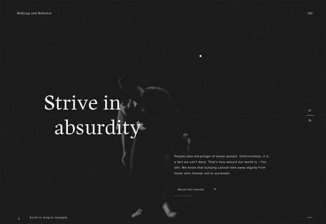 Чем темнее фон в этих проектах, тем больше загадки они создают. Более темные фоны также повышают читаемость из-за контраста с белым текстом. Скорость анимации может создать ощущение спокойствия или безумия.