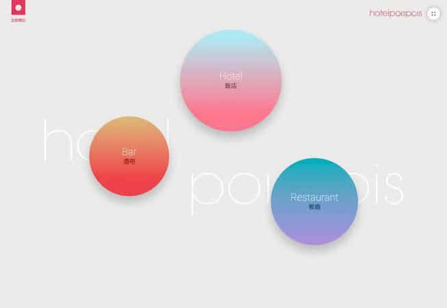 использует плавающие круги для создания визуального интереса, но они также служат гигантскими кнопками, которые переносят пользователей в разные части веб-сайта.