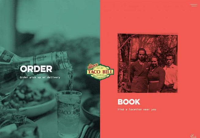 Хорошим примером этого является веб-сайт . Дизайн сразу же задает вопрос пользователям: вы хотите заказать еду или забронировать столик, чтобы поесть в ресторане. Дизайн с разделенным экраном делает больше, чем просто упрощает использование дизайна, он фактически показывает визуально пользователям, что они имеют несколько вариантов.