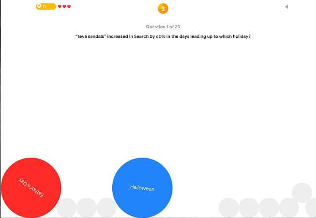 Сайт использует фирменные круги, чтобы побудить пользователей нажимать на ответы на игровые вопросы. Круги в игре имитируют цвета и размеры кругов в интерфейсах Material Design и еще раз подчеркивают, что круги – в мире Google — предназначены для взаимодействия.